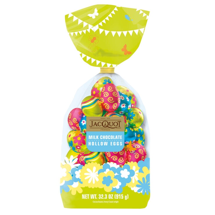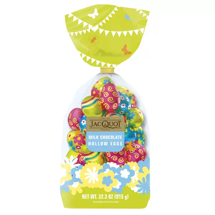 フランスのチョコレートメーカー大手、ジャコー(Jacquot)のチョコエッグです。カラフルなホイルで一個ずつ包まれているのでパーティーの飾りつけや、復活祭の伝統的な遊び「イースターエッグハント」にもぴったり。