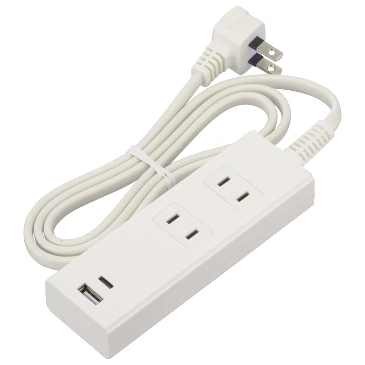 オーム電機 2口 PD対応USBポート付きタップ 1m ホワイトHS-TU21PD23-W /ブラック HS-TU21PD23-K