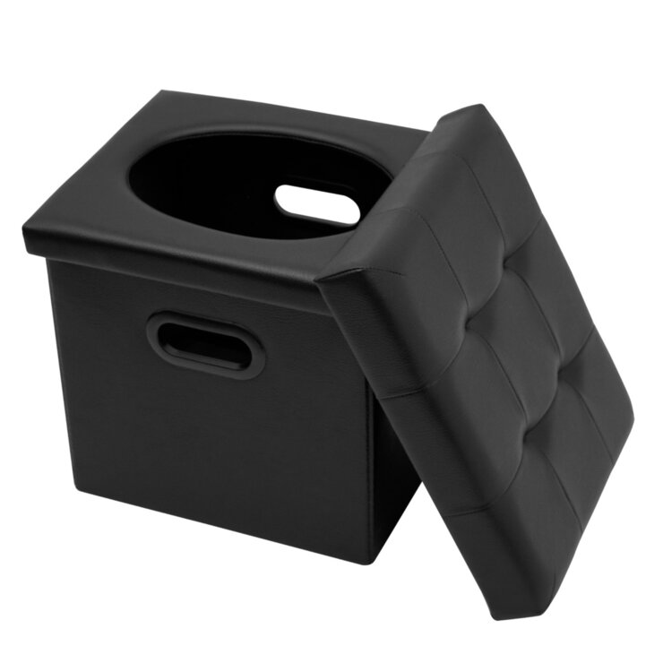 【普段使いできる折りたたみ式スツール型】PVCレザー調のシンプルな外観はインテリアにもなじみやすく、玄関やリビング、寝室に置いても違和感なく使えます。内部に防災グッズや日用品を収納し、普段はスツールやオットマンとして使用可能。非常用トイレに見えないデザインで、収納スペースを有効活用できます。キャンプや車中泊、渋滞時の簡易トイレとしても便利です。