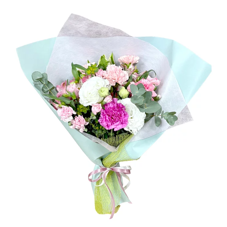 カーネーションを中心に華やかな仕上がりのブーケです。