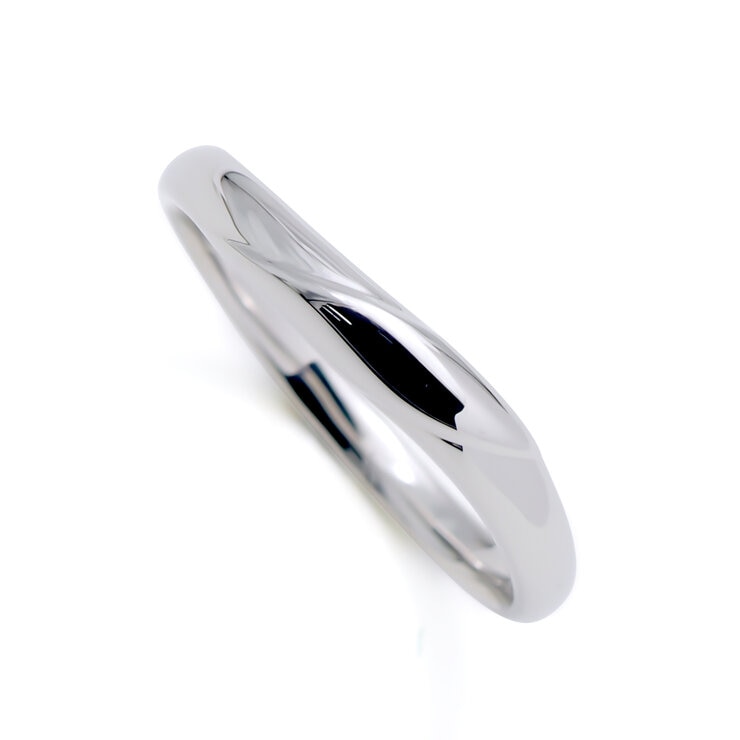 表面はミラー仕上げ、鋳造製法ならではのやわらかいS字カーブラインが指になじみ、手をすっきり見せるリングです。