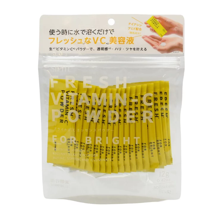 ビタミンC×ナイアシンアミド(保湿成分)配合の濃縮美容パウダー。いつもの化粧水を濃縮美容液に。