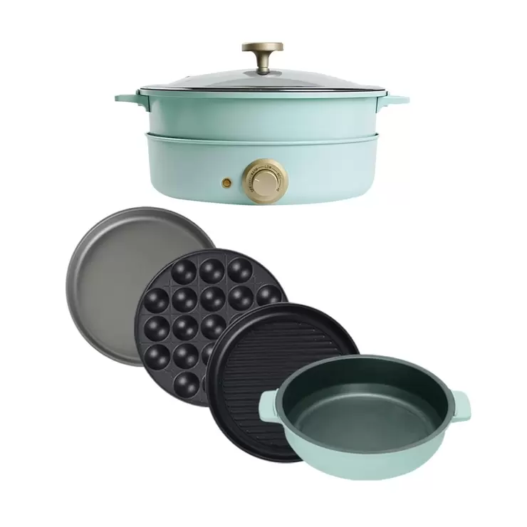 - 付属の4種類のプレートで、たこ焼き・焼肉・しゃぶしゃぶ・お好み焼き・野菜炒めなど多彩な料理に対応
