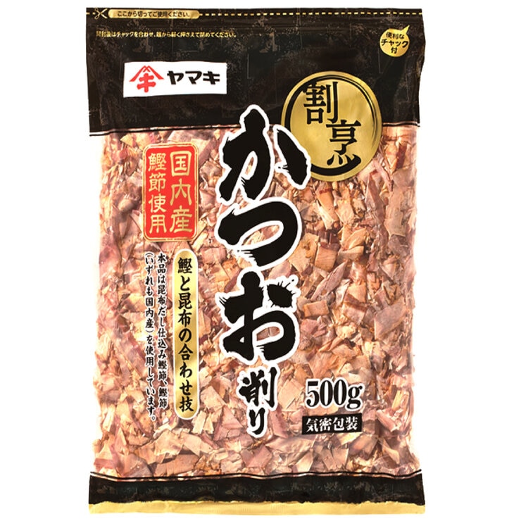 プロも使用している業務用、大容量(500g)のかつおぶしです。かつおの生利節を昆布だしで漬け込む独自製法で仕上げた鰹節(かつお節)と鰹節(かつお節)(いずれも国内産)を薄く削りブレンドしました。鰹節(かつお節)と昆布(こんぶ)のうま味をお楽しみください。便利なジップ付き、開封後は、袋の切り口を閉じて、冷蔵庫で保管して、できるだけお早めにお使いください。