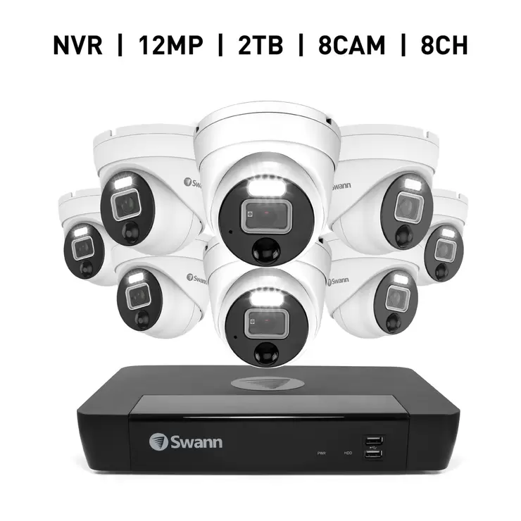 Swann(スワン)8CH 12MP NVRセキュリティシステム2TBドーム型カメラ8台セット SWNVK-890008D