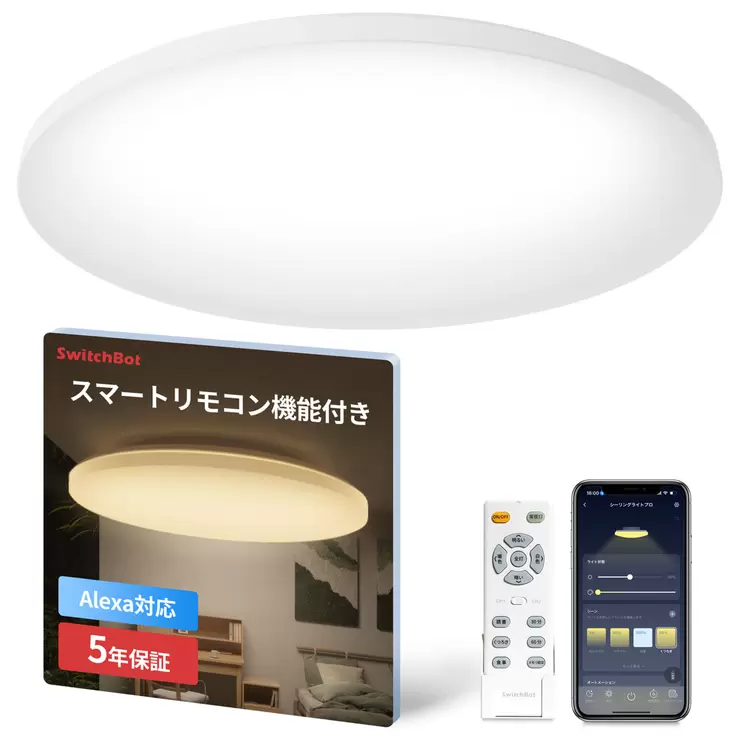 スイッチボット ハブ機能付き 無段階調光調色シーリングライトプロ6畳 W2612210