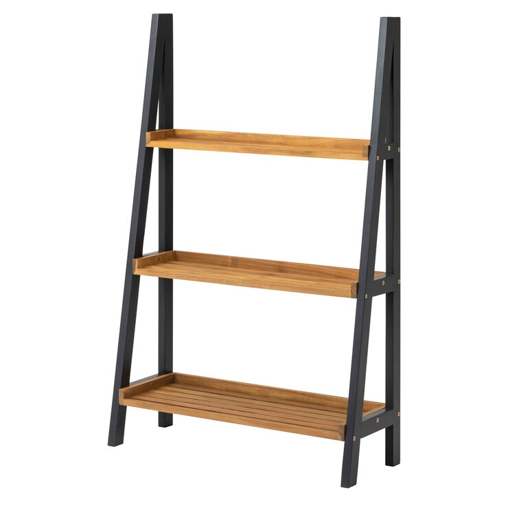 花鉢をたっぷり置ける、木製の3段シェルフ。