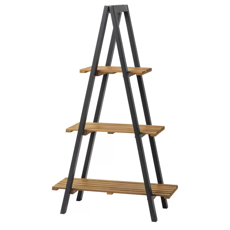 花鉢をたっぷり置ける、木製の3段シェルフ。