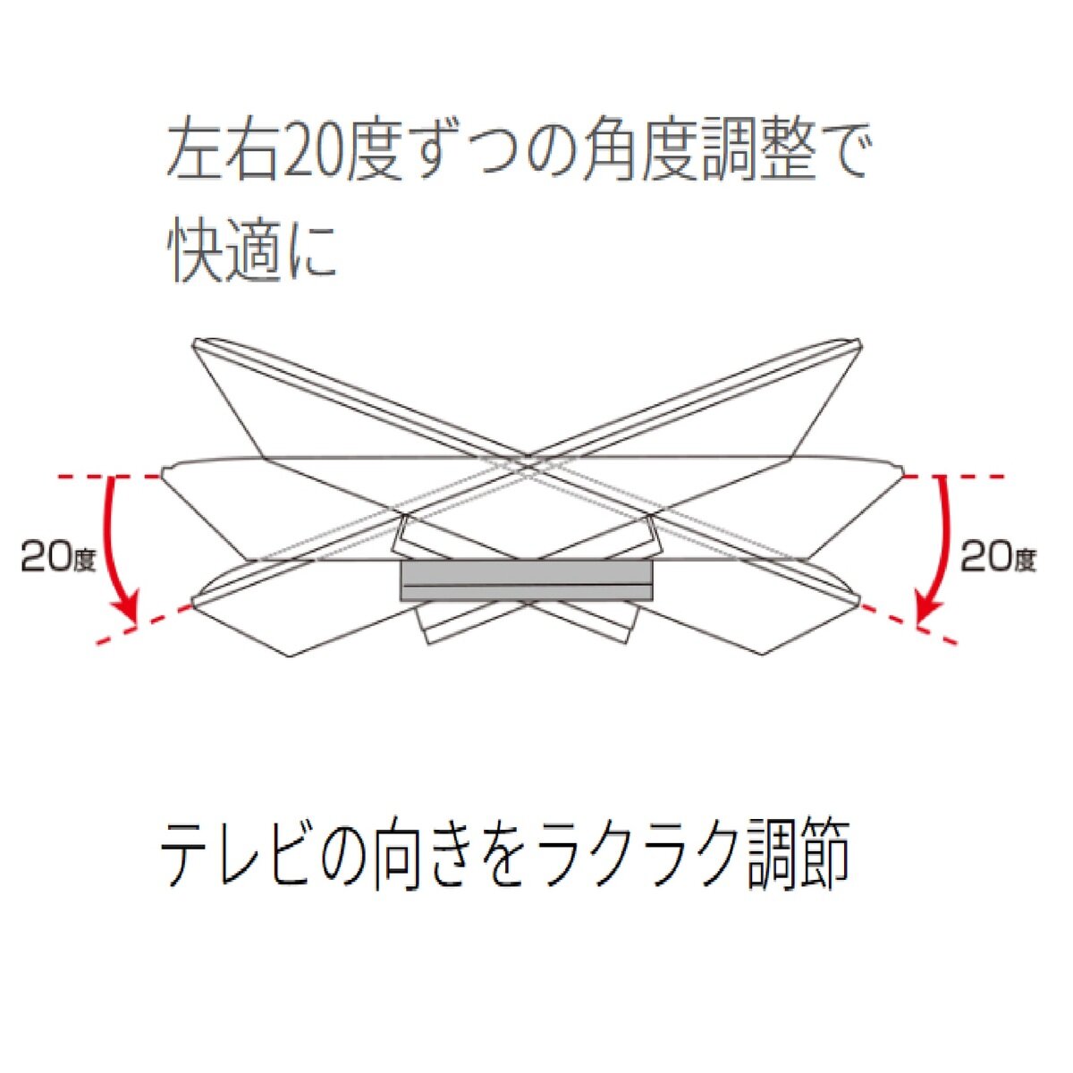 また、ケーブル類の接続やテレビ背面のお掃除にも便利です。左右約20度ずつ、水平方向に角度調整が可能だから