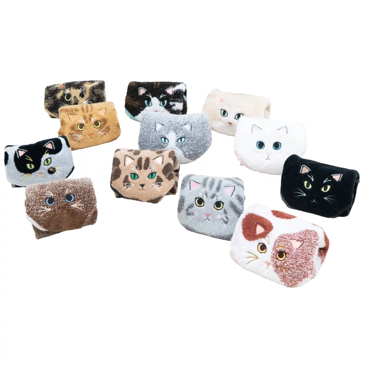 ニャンコの柄をデザインした、個性豊かなタオル。
