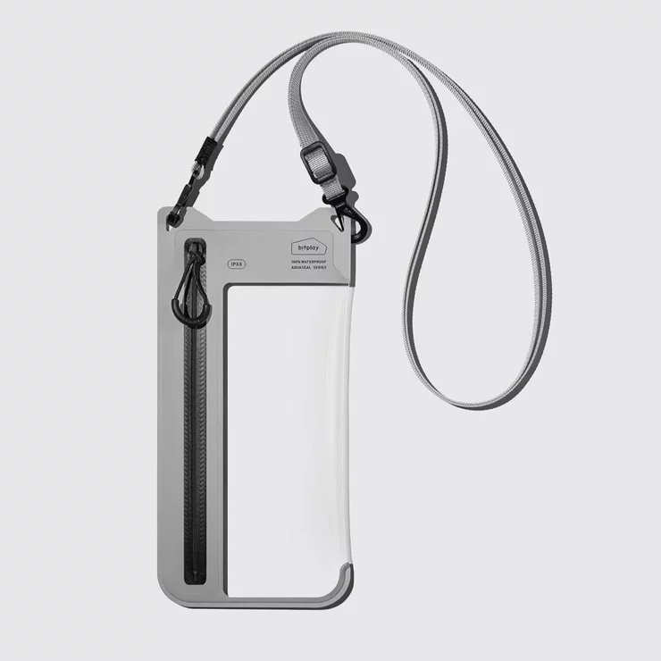 1:AquaSealフォーンポーチは耐衝撃構造ではありません。そのため、バッグの中に入れたものについての保護を保証するものではありません。バッグに入れる際にスマートフォンや貴重品についてご自身で必要な補強などを行ってください。